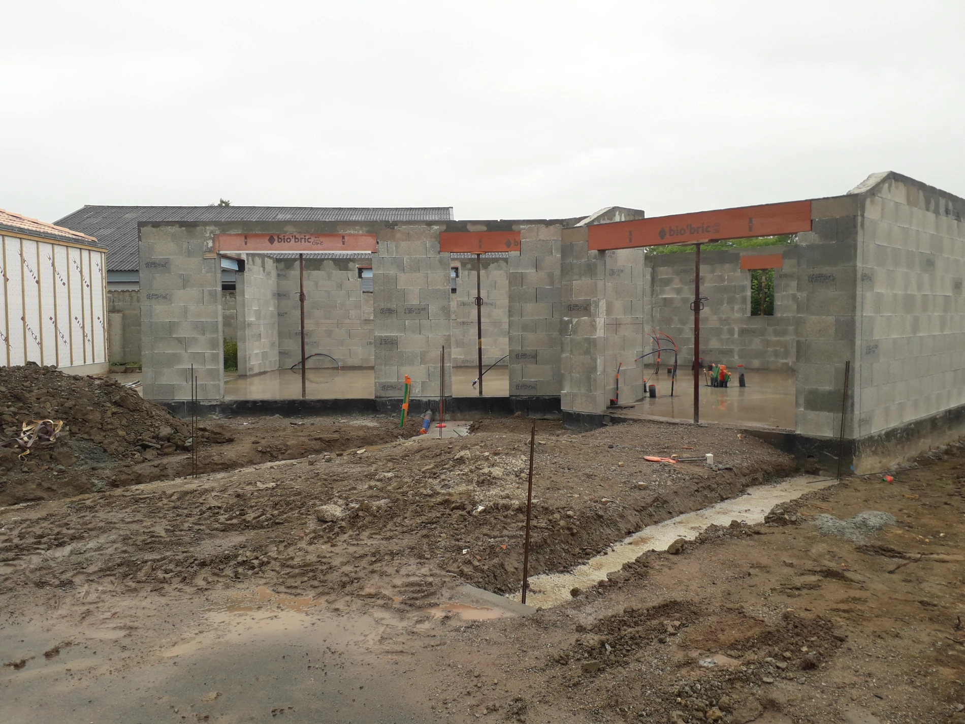 Le chantier s’est terminé par la réalisation de la ceinture en béton armé, assurant la stabilité et la durabilité de l’ensemble.